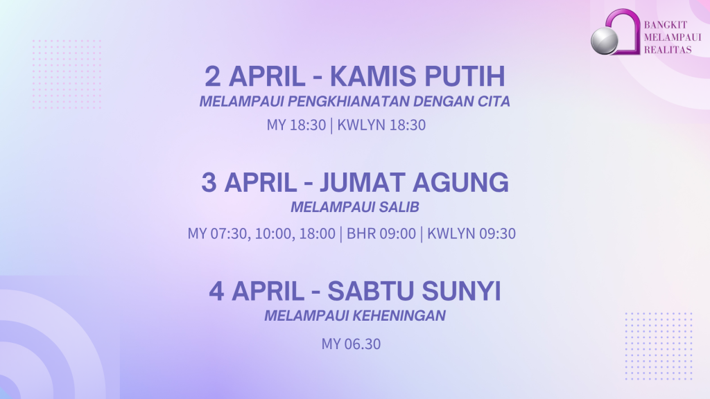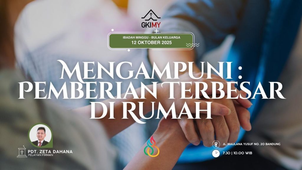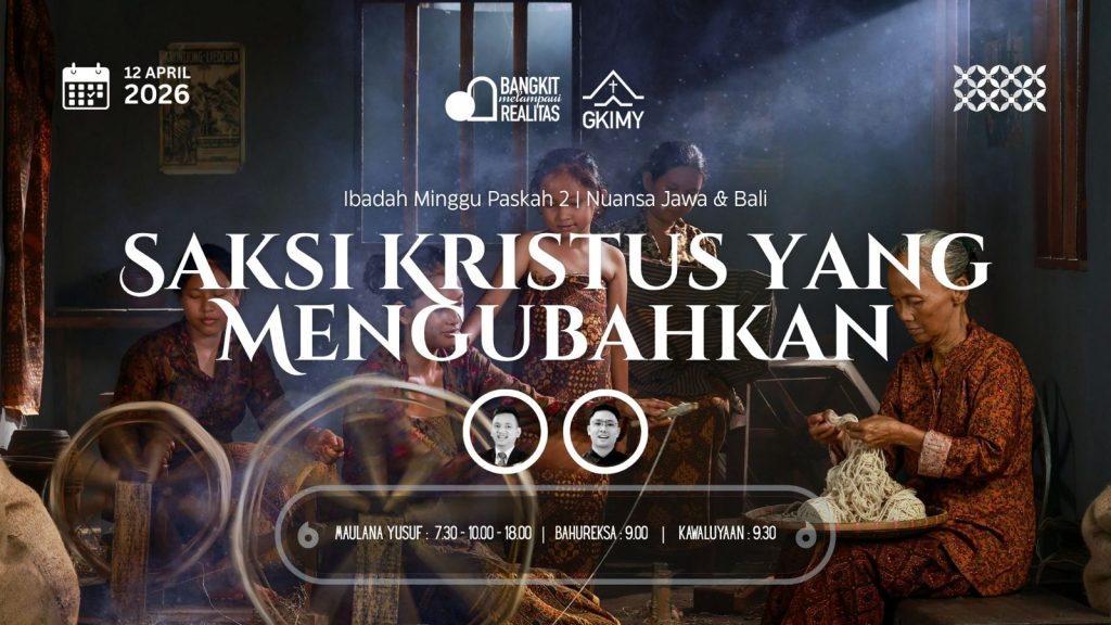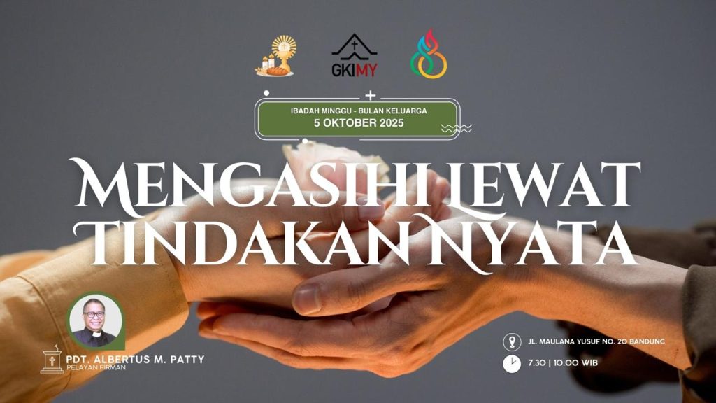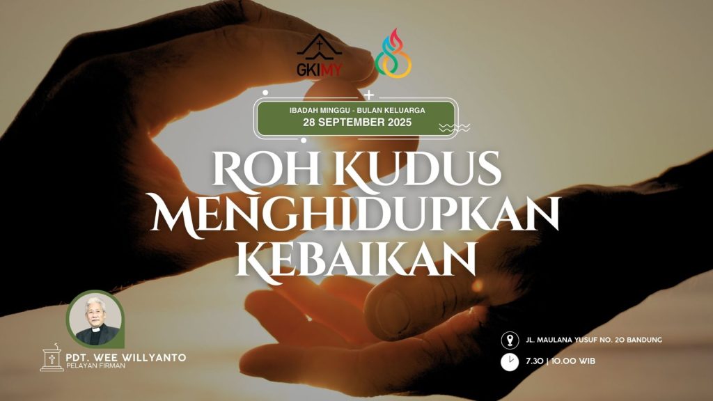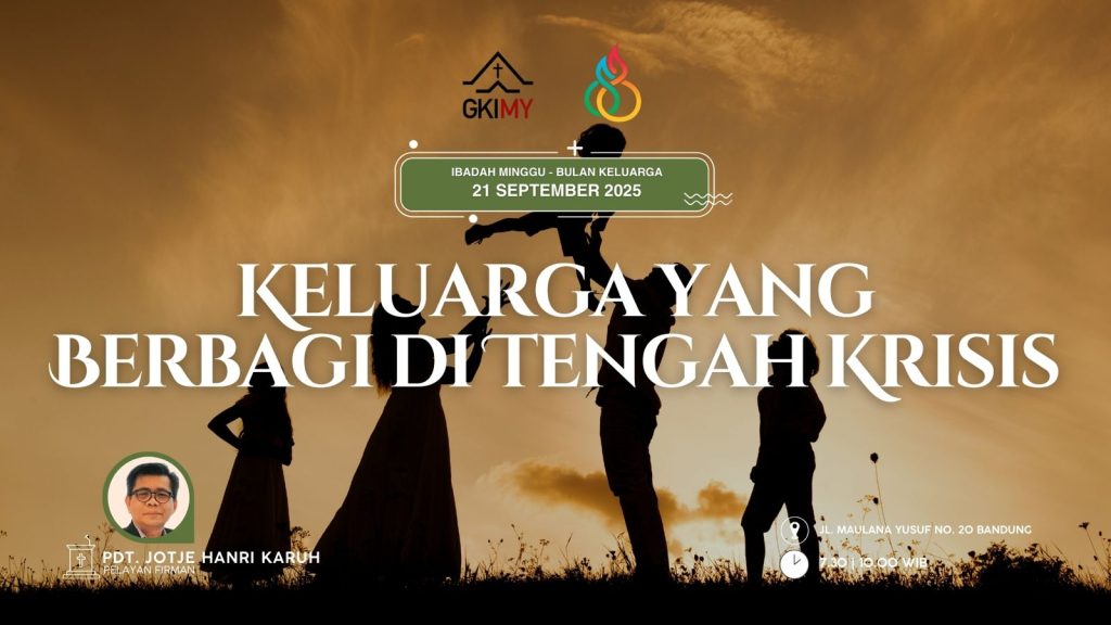 Kebaktian ini akan diadakan on-site :| pukul 07.30, 10.00, dan 18.00 di GKI Jl. Maulana Yusuf No. 20 Bandung || pukul 09.00 di Jl. Bahureksa No. 26 || pukul ...