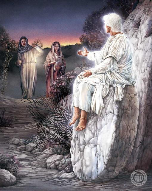 Malaikat yang duduk di atas batu yang terguling tersebut memiliki makna simbolis yang kuat. Duduk adalah posisi otoritas. Malaikat tersebut “menduduki” penghalang yang tadinya menakutkan manusia. Ini adalah bentuk penghinaan ilahi terhadap maut.